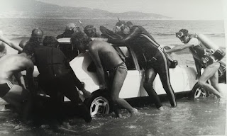 Sprzęt na pierwsze obozy drużyny pożyczyliśmy od studenckiego Klubu Nurkowego 'PIRANIA”. Pierwszym szefem szkolenia płetwonurkowego był dh Ludwik Izraelowicz. Pierwszy sprzęt drużyna zakupiła 1 1983 r w Łodzi były to 4 zestawy dwubutlowe z automatami Łukasik tzw 'zardzewiała śmierć”. Pierwszym samochodem drużyny był UAZ.