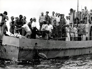 zrzuty żywności ze śmigłowców akcja pontonowa – dotsrczanie żywności wody |