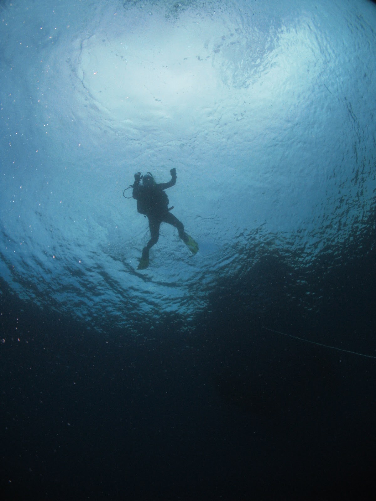 Zgodnie z wytycznymi nurkowania w grocie czy jaskini tak jak nurkowania nocą powinny odbywać się z użyciem przynajmniej jednej latarki podstawowej, jednej lampy zapasowej i światła chemicznej na jednego nurka. Mimo nie spełniania tych warunków w naszych latarkach pojawiają się zjawiskowe widoki. Obszerna komnata o średnicy około 40 metrów, do której wpływa się na głębokości zaledwie 3-5 metrów, ma w przekroju poprzecznym kształt dzwonu i opada do głębokości maksymalnej 39 metrów. O tym, że tysiące lat temu jaskinia była ponad poziomem wody, świadczą zwisające z sufitu i ścian jaskini stalaktyty. Miejsce absolutnie niezwykłe, majestatyczne, pociągające i piękne zarazem. Przystanek bezpieczeństwa, już o opuszczeniu jaskini, na dnie skalistym o głębokości od 2-3m do około 10m urozmaicają nam piękne ubarwione, o ciele czerwone i żółtym oraz głowie czarnej o wielkość od 4-8cm ryby rodzaju Ślizg Trójpłewnik Skoczek (Trypterigion tripteronotus). Spotykamy je leżące na dnie, jakby zmęczone, a może zwyczajnie leniwe.
